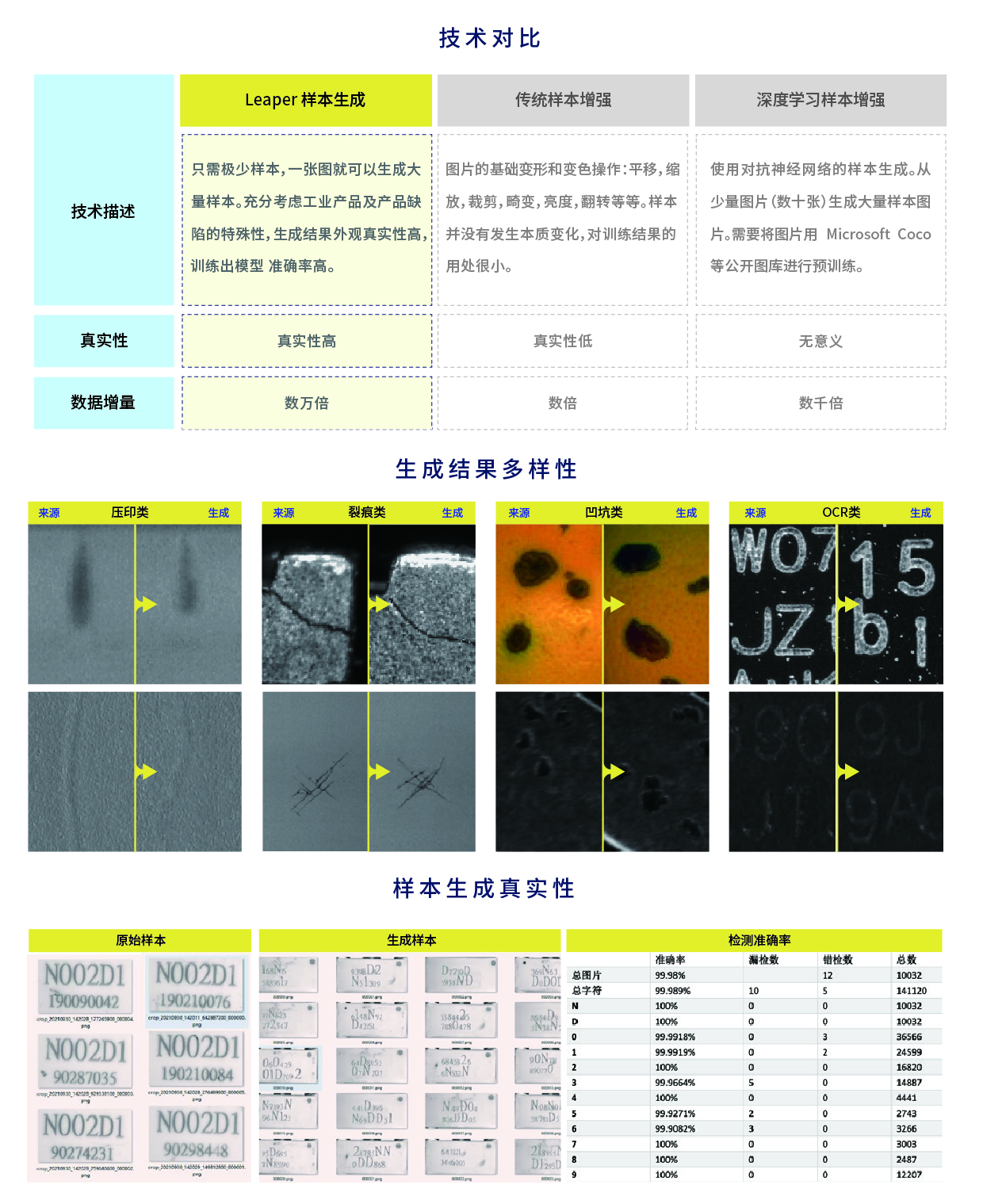 利珀灵闪AI平台提供完备可靠的深度学习体系,整合高效快速的样本生成功能,既不依赖大量样本,也无需持续投入,着眼工业客户复杂紧迫的应用场景,快速提供缺陷检测方案。